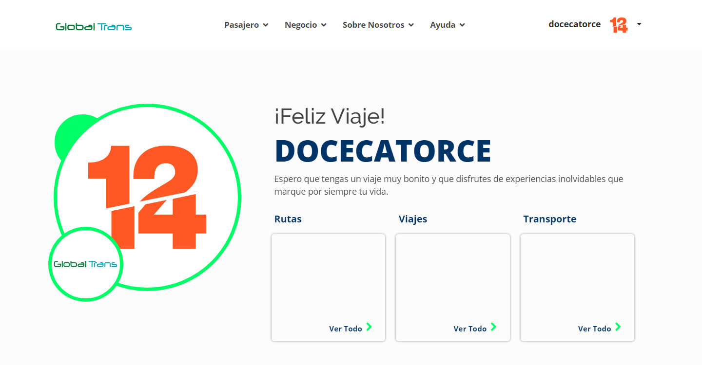 Paso Nro. 3: Una vez ingresado en su cuenta, el sistema le da la bienvenida, para adquirir su pasaje se debe elegir una de las tres opciones que vemos a continuación, ruta, viajes o transporte de acuerdo al sitio que usted se dirija, en rutas encontraremos lo que son las rutas urbanas e interurbanas, en viajes encontraremos los viajes extraurbanos y turísticos y por ultimo tenemos los transportes el cual usted puede seleccionar si se dirige a trabajar en alguna de las rutas de transportes que tenemos asignadas en este caso como ejemplo eligiremos transporte.
