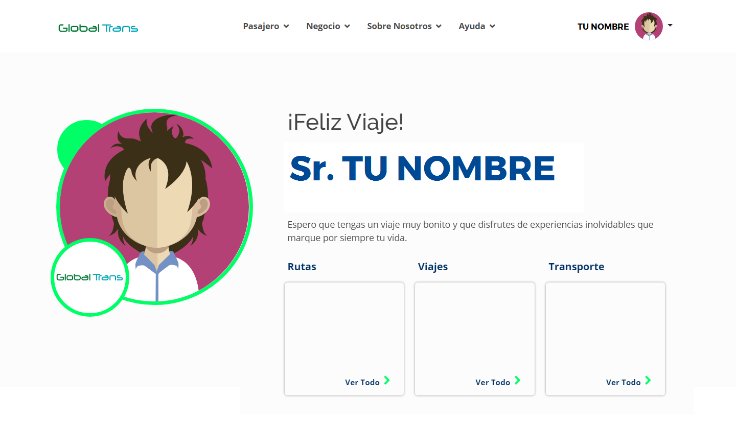 Paso Nro. 3: Una vez ingresado en su cuenta, el sistema le da la bienvenida, para adquirir su pasaje se debe elegir una de las tres opciones que vemos a continuación, ruta, viajes o transporte de acuerdo al sitio que usted se dirija, en rutas encontraremos lo que son las rutas urbanas e interurbanas, en viajes encontraremos los viajes extraurbanos y turísticos y por ultimo tenemos los transportes el cual usted puede seleccionar si se dirige a trabajar en alguna de las rutas de transportes que tenemos asignadas en este caso como ejemplo eligiremos transporte.